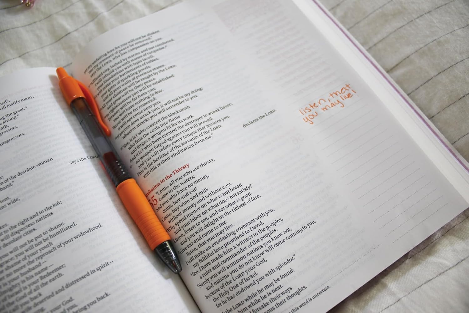 Deepen her relationship with God through contemplative prompts and space to journal her responses.With hundreds of journaling prompts and plenty of space for notes, art, and doodles, the NIV Journal the Word® Bible for Teen Girls provides a place for a teen girl to capture her thoughts while reading Scripture.Throughout the pages of this beautiful journaling Bible, she can journal her feelings, dreams, and hopes, as well as create art, color, and doodle. However she wishes to creatively express herself, she can engage with God’s heart and get to know the One who knows and loves her.Features:Complete text of the accurate, readable, and clear New International Version (NIV)Hundreds of thought-provoking questions for teen girls to reflect on and respond toLined, wide margins for notes and reflectionsThicker white paper for enduring note-takingTwo-color page designWords of Jesus in redRibbon markerCloth over board cover lies flat when openType size: 8 Read more